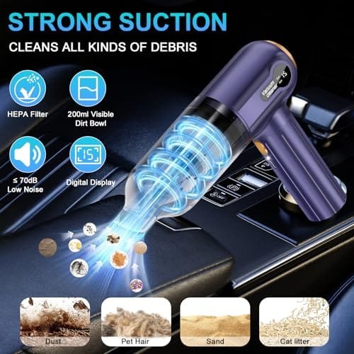 Una de las características más destacadas de la Ledeak Aspiradora de Mano es su potente succión. Con 15000PA, es capaz de recoger polvo, migas y pelos de mascotas con facilidad. Además, su diseño ergonómico permite un uso cómodo durante períodos prolongados, evitando la fatiga en la mano. La aspiradora también cuenta con múltiples accesorios que la hacen aún más versátil, permitiéndote adaptarla a diferentes superficies y necesidades de limpieza. Desde alfombras hasta tapicería, la Ledeak se adapta a cada rincón de tu hogar o vehículo.